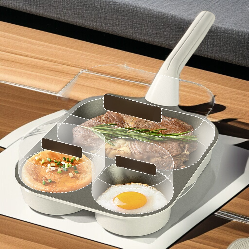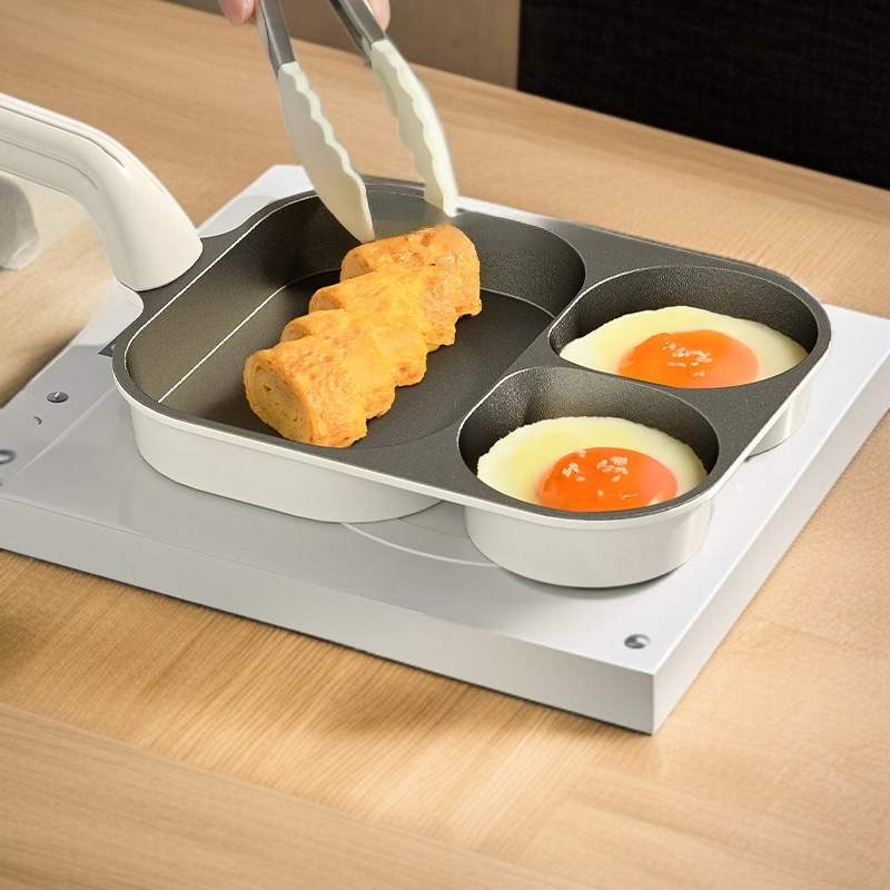 ● Vielseitige 3-in-1 Bratpfanne – Perfekt geeignet zum gleichzeitigen Zubereiten von Omelett, Speck und Pfannkuchen, spart Zeit und Energie beim Frühstück.